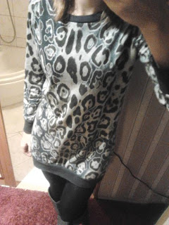 Kupiłam ją w jakimś małym sklepiku. Może i panterka nie jest już tak modna jak kiedyś, ale dziś nie akurat nie stawiam na bardzo modny wybór,ale na wygodę. Do tego wygodne buciki kozaki i czarne grube rajstopki,,,
