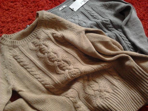 Bardzo podobały mi się ostatnio sweterki z warkoczami, nie wiedziałam na jakie kolory się zdecydować, ale stwierdziłam, że szary będzie pasował mi praktycznie do każdego koloru koszul a brąz będzie fajnym połączeniem z niebieską koszulą lub innymi odcieniami.