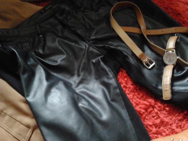 Wczoraj postanowiłam połączyć czerń z camelem. Myślę, że jest to świetne i modne połączenie. Jedne z moich ulubionych spodni skórzanych, do tego mój nowy czarny sweterek oversize. Połączeniem jest mój camelowy żakiet i nowiutkie buciki z ćwiekami i camelowe dodatki.