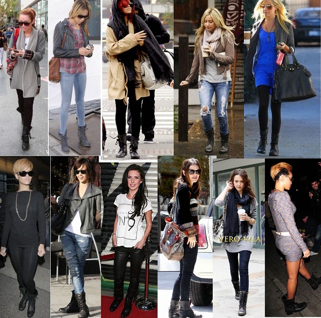 Na deszczową pogodę, na mróz, zakupy, wypady na spacer czy na koncert... są super. Określeń są tysiące, ale najbardziej popularną nazwą są worker boots lub combat boots. W Polsce panowała do niedawna moda na prawdziwe glany, ale dla mnie osobiście wyglądają zbyt ciężko na stopie i sprawiają, że nie miałabym do czego ich założyć. Workers boots początkowo były noszone przez żołnierzy, ale niedługo potem znalazły się w najmodniejszych stylizacjach... Pokochały je gwiazdy, a ich największą fanką jest Rihanna, która nosi je do wszystkiego czyli do szortów, poprzez legginsy, dzinsy, spódniczki, aż do sukienek kończąc!